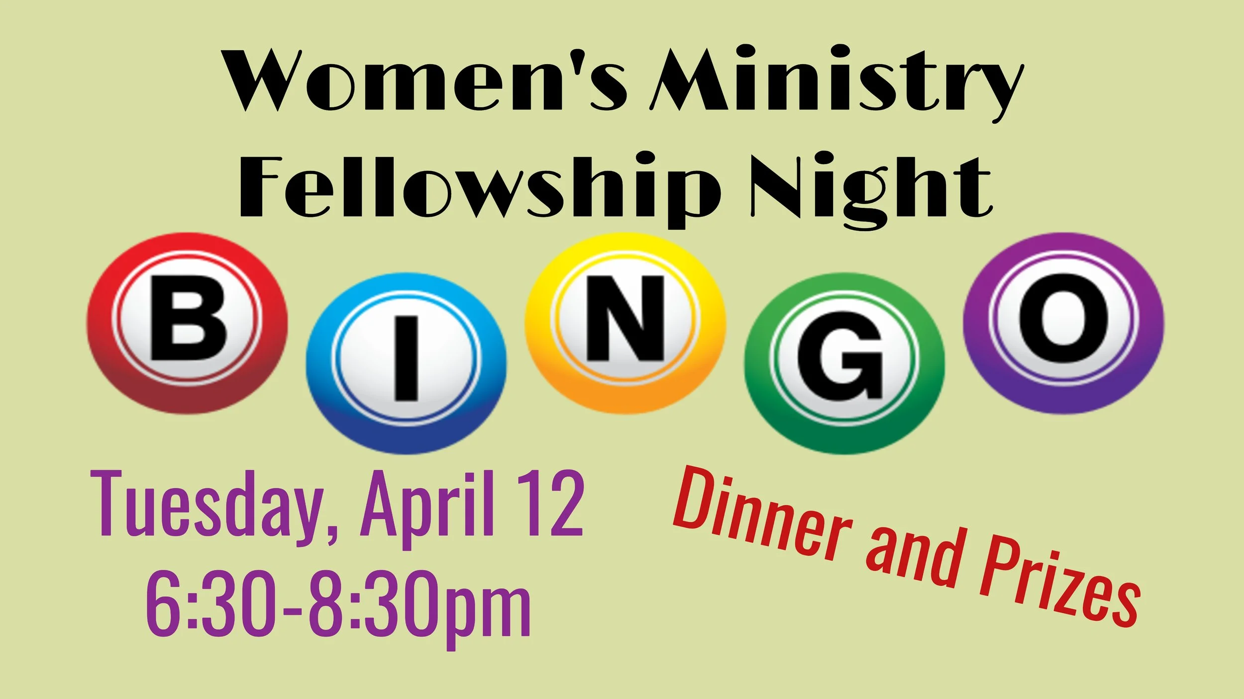 Women’s Ministry is hosting BINGO night! We hope you can join us. We know it is going to be full of laughs.