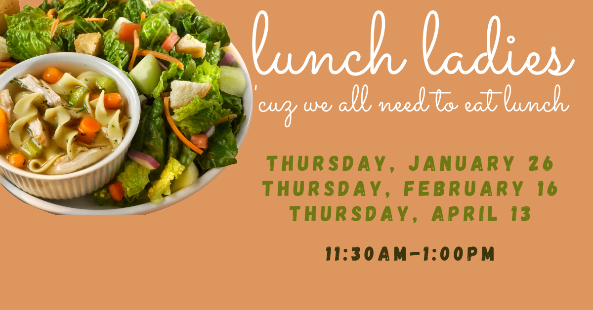 Let’s do lunch! Come on over as your schedule allows and grab a bite with us. No need to bring a thing. This is casual, buffet style lunch and we will have plenty so get out of the house or office and let’s enjoy lunch together.